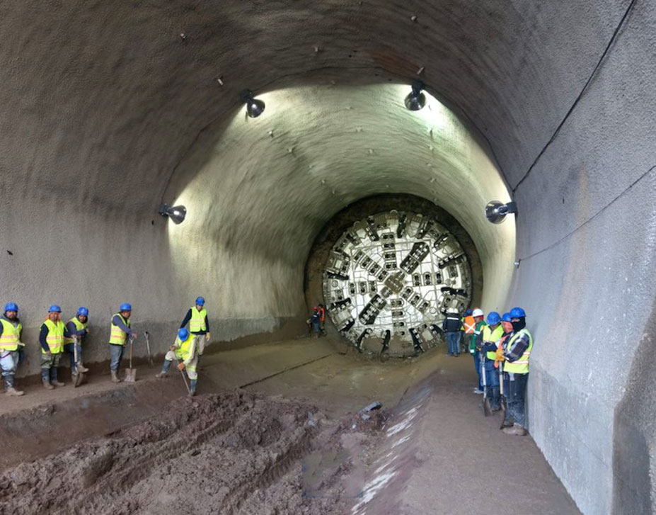 Las tuneladoras S-948 La Marquesa (tubo vía derecha) y S-949 La Mexiquense (tubo vía izquierda) excavaron durante 18 meses ambos tubos, que tienen un diámetro de 8,5 metros (interior de 7,5 metros), extrayendo más de 285.000 metros cúbicos de material al exterior, y colocaron 6.312 anillos de dovelas de hormigón armado como revestimiento. El avance medio fue de 12 metros /día. A medida se producía su avance se construyeron 25 galerías transversales de interconexión entre tubos (20 de evacuación y 5 técnicas).